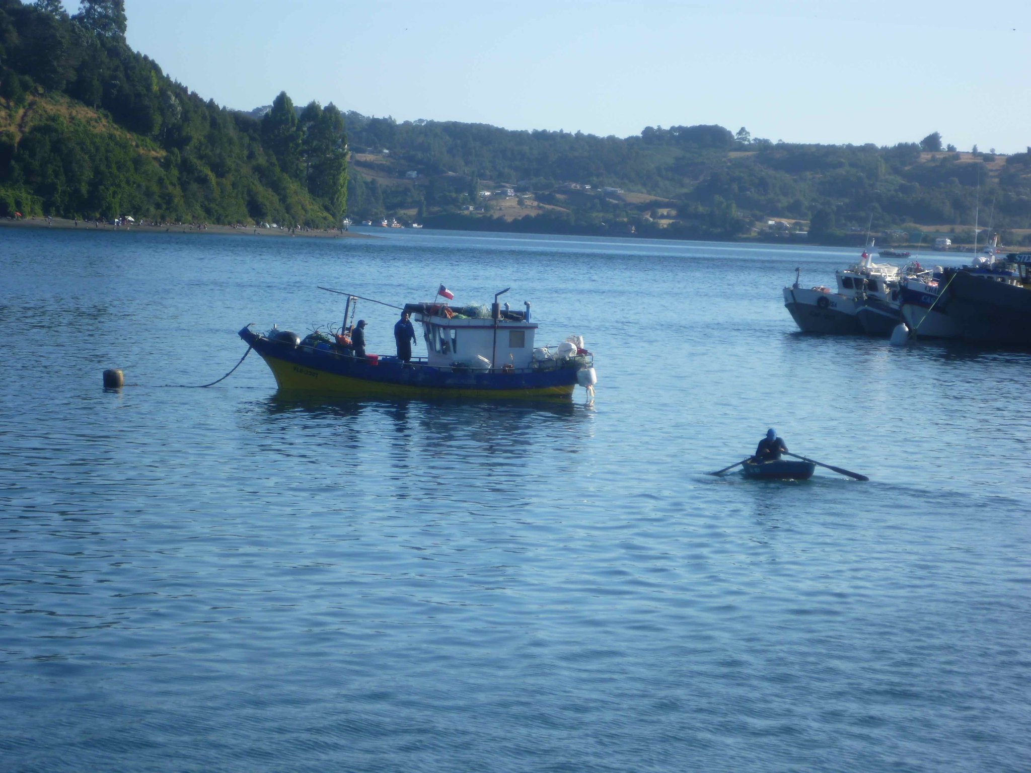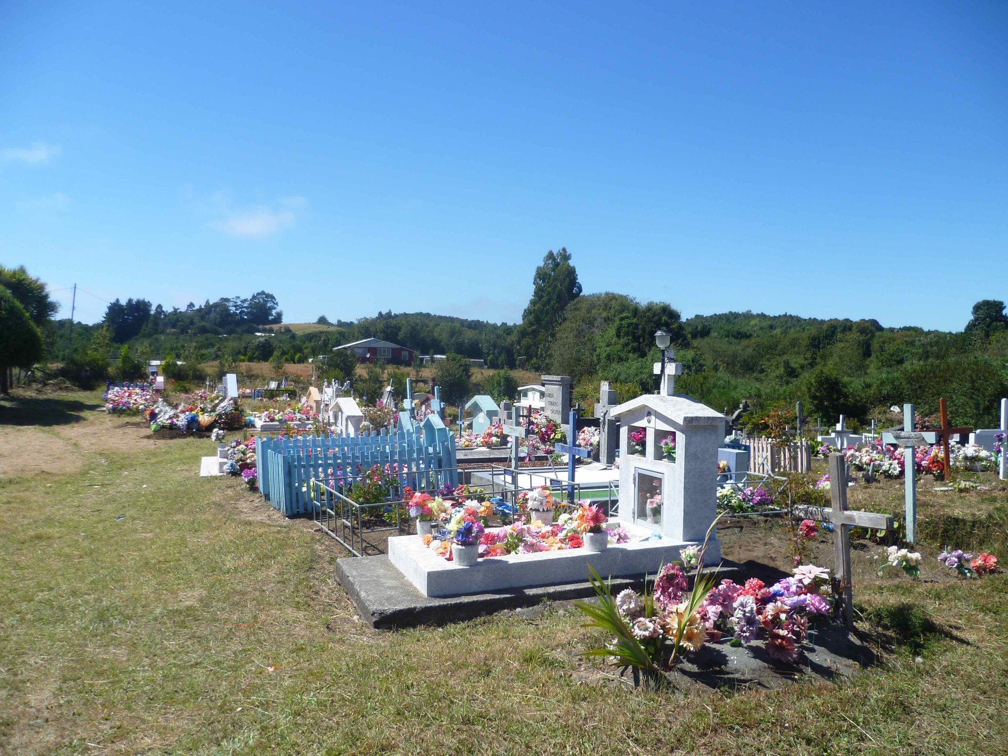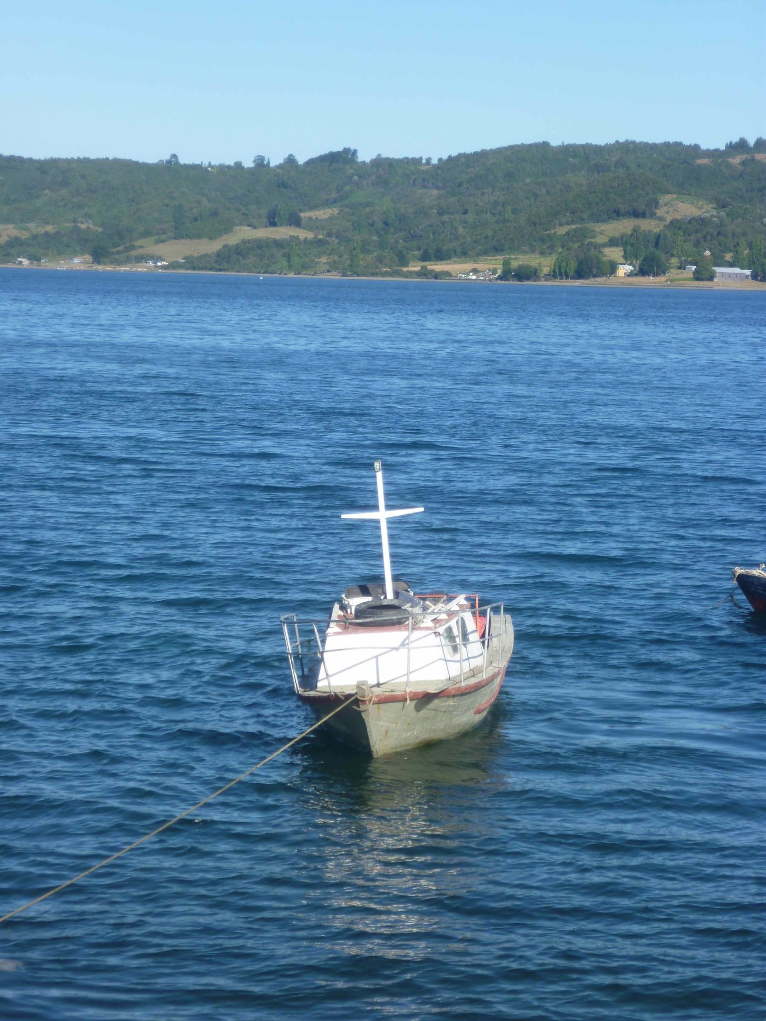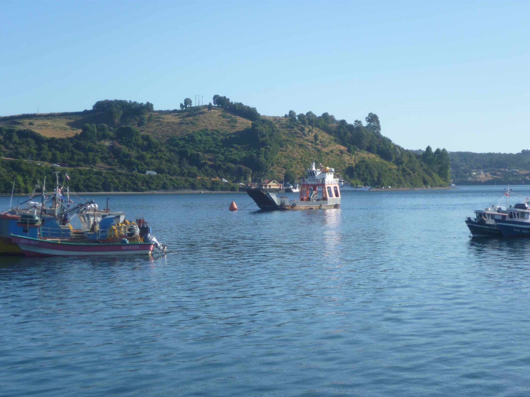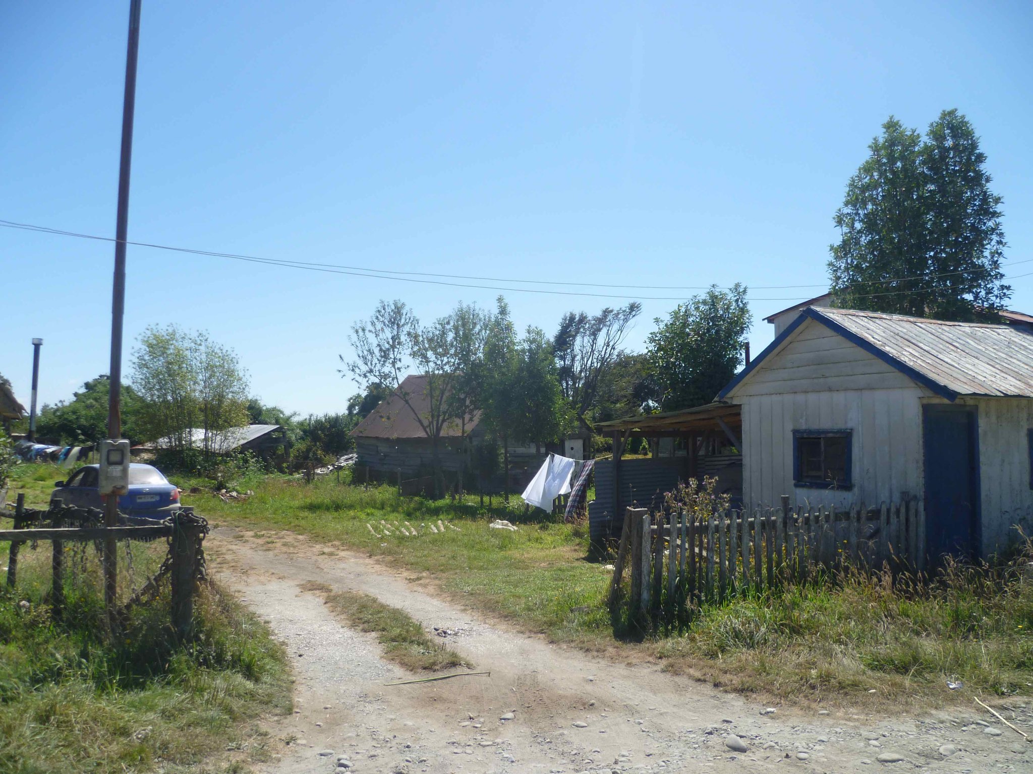 Heute geht es weiter auf der Insel Chiloe Richtung Süden. Am Wasser soll es bis nach Dalcahue gehen. Die Straße ist wieder Manfredos Abenteuer ! Eine Schotterstraße mit großen Löchern befahren wir und kommen durch kleine Dörfer, die uns das ländliche Chiloe zeigen.Die Menschen leben vom Fischfang. Das Sammeln von Algen ist ein guter Nebenverdienst. Sie werden getrocknet und als Gemüse in kleinen Paketen auf dem Markt verkauft. Auch als Dünger für die Felder oder als Viehfutter werden sie verwendet. An einem Friedhof haben wir Halt gemacht und auch deutsche Namen gefunden. Bei einer Mittagspause am Strand konnten wir auch entdecken, dass eine Kirche nicht nur den Menschen Schutz und Geborgenheit geben kann, sondern wir alle sind seine Schäfchen - auch die echten Schafe.