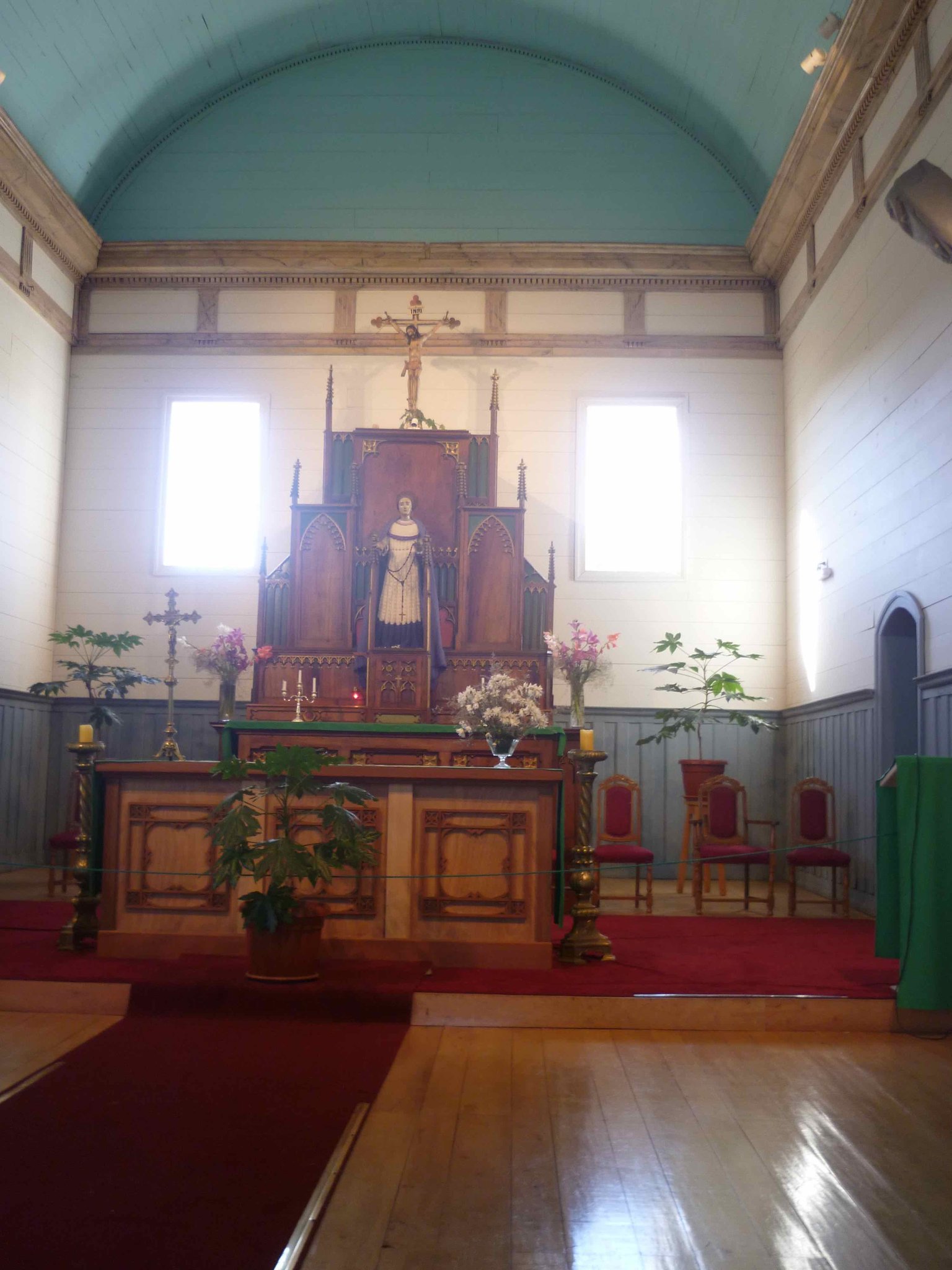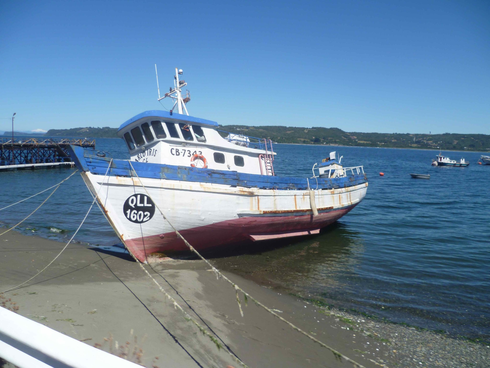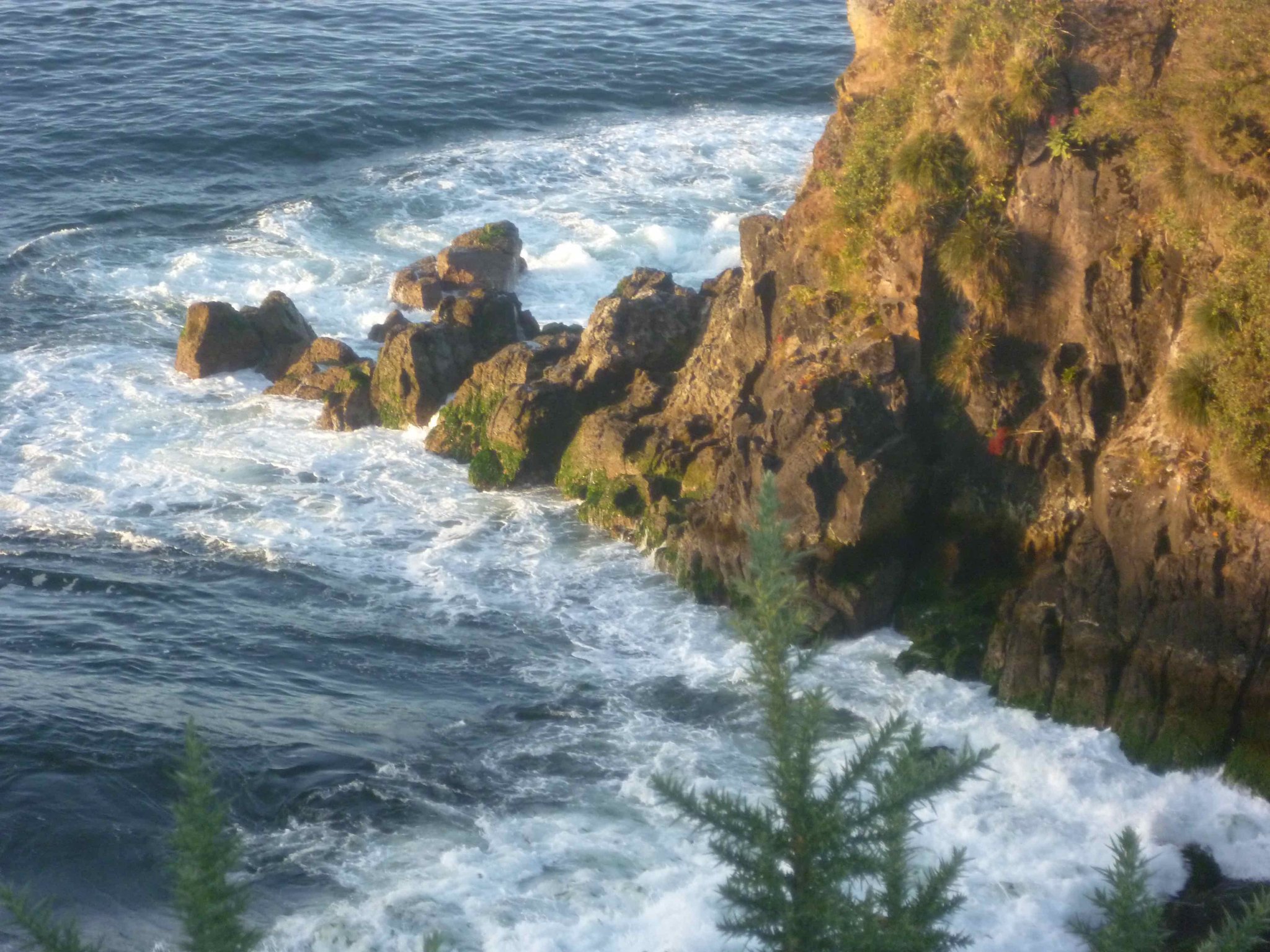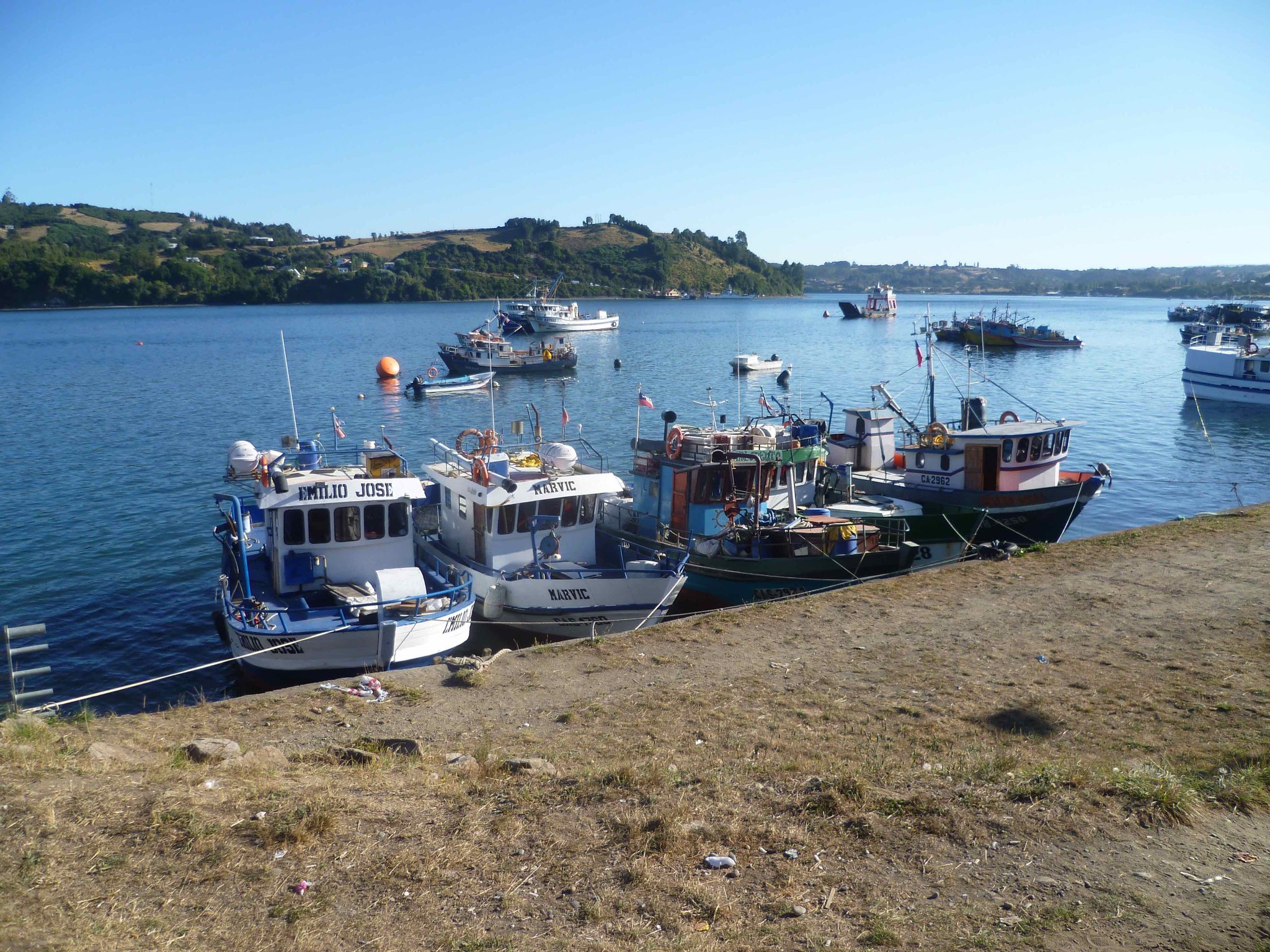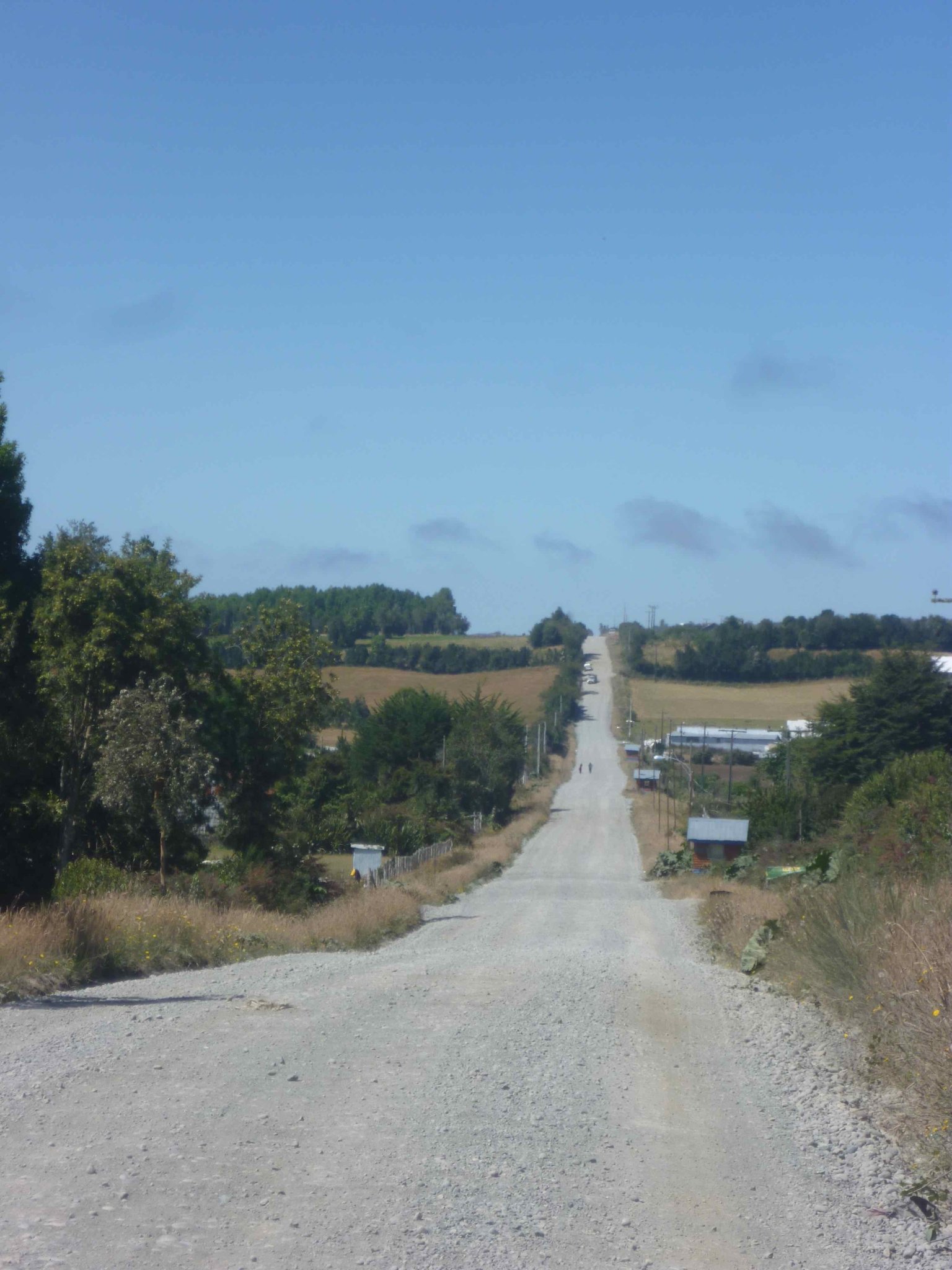 Heute geht es weiter auf der Insel Chiloe Richtung Süden. Am Wasser soll es bis nach Dalcahue gehen. Die Straße ist wieder Manfredos Abenteuer ! Eine Schotterstraße mit großen Löchern befahren wir und kommen durch kleine Dörfer, die uns das ländliche Chiloe zeigen.Die Menschen leben vom Fischfang. Das Sammeln von Algen ist ein guter Nebenverdienst. Sie werden getrocknet und als Gemüse in kleinen Paketen auf dem Markt verkauft. Auch als Dünger für die Felder oder als Viehfutter werden sie verwendet. An einem Friedhof haben wir Halt gemacht und auch deutsche Namen gefunden. Bei einer Mittagspause am Strand konnten wir auch entdecken, dass eine Kirche nicht nur den Menschen Schutz und Geborgenheit geben kann, sondern wir alle sind seine Schäfchen - auch die echten Schafe.