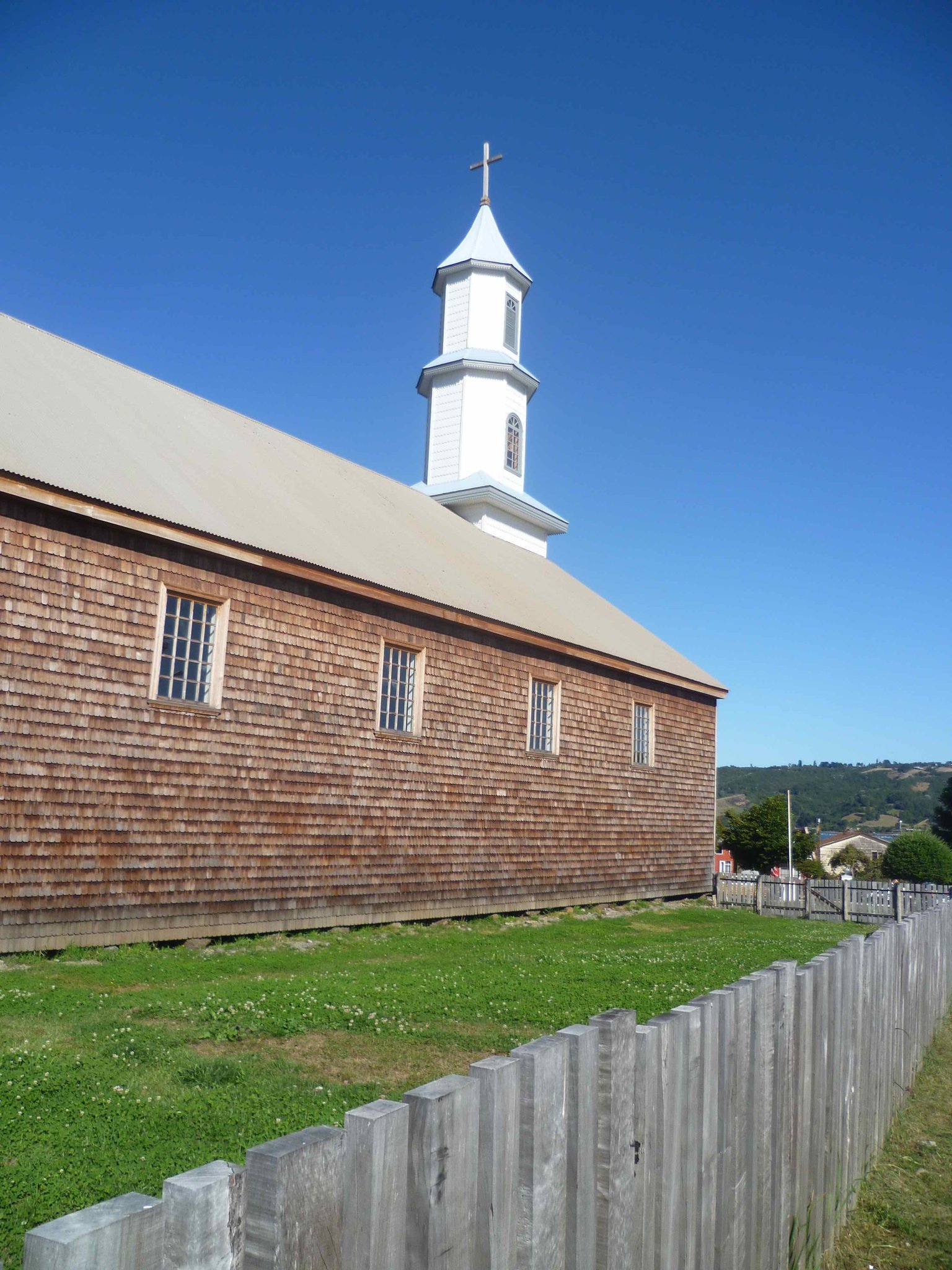 In Dalcahue erwartet uns eine Holzkirche ! Sie ist eine von vielen schönen Holzkirchen auf dieser Insel.