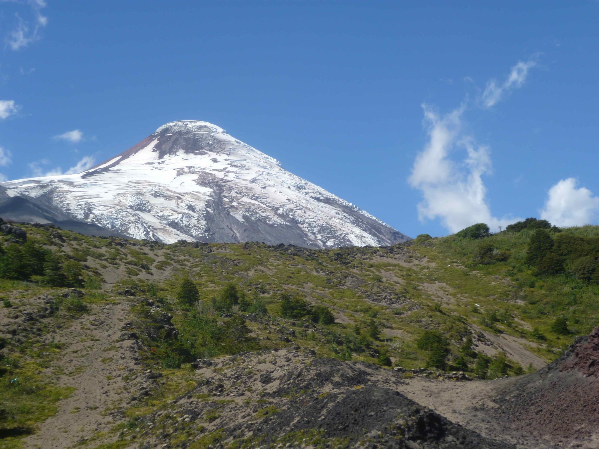 Es geht ein wenig weiter. Der Vulkan Osorno ( 2652 m ) bestimmt unseren heutigen Tag. Sein letzter Ausbruch war im Jahre 1834/35.( Charles Darwin hat den Ausbruch beschrieben ) Seither verschließt eine dicke Schnee-und Eisdecke den Krater. Die Bilder erzählen von unserer Autofahrt ganz nach oben.